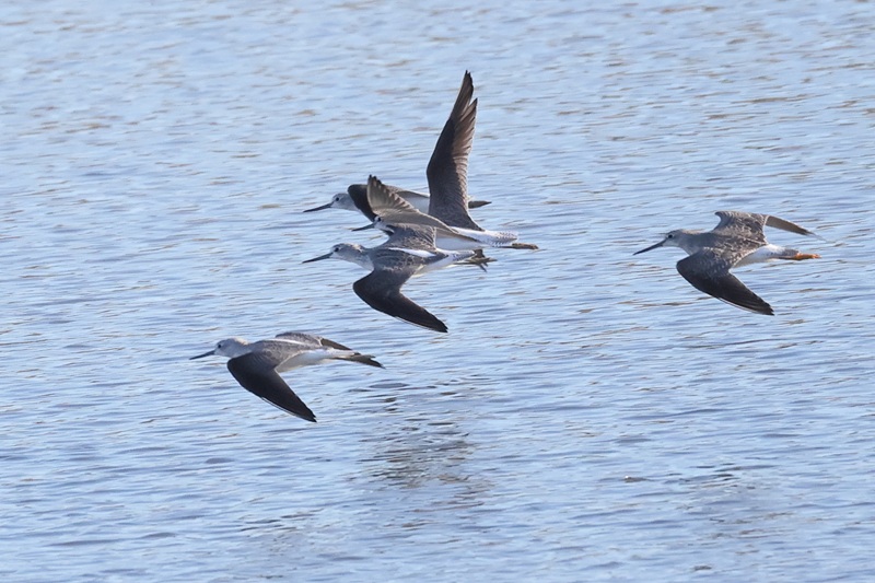 数羽のアオアシシギと飛んでいる画像やオオキアシシギをアップした画像です。
