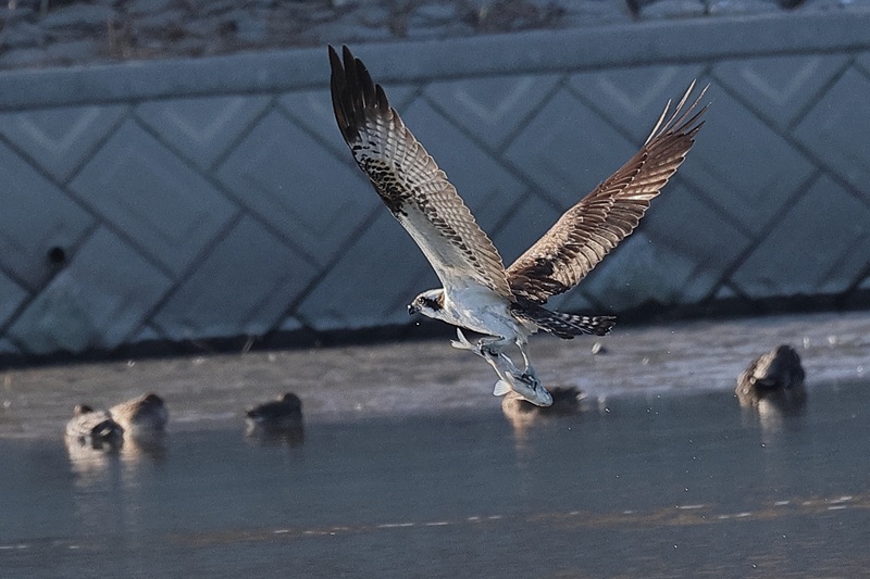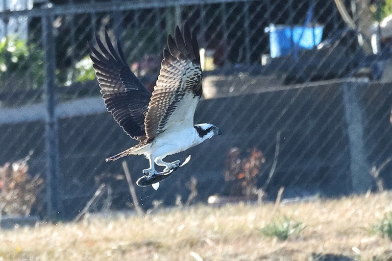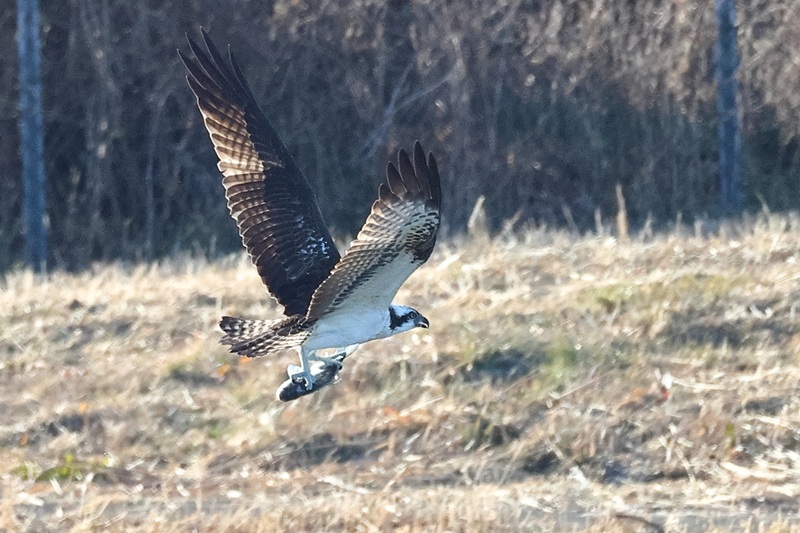 ミサゴは大きなフナか鯉をゲットし飛び去りました。我々カメラマンには思いもよらぬサービスでした。