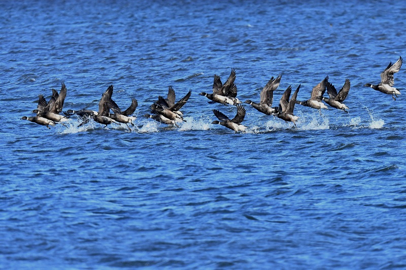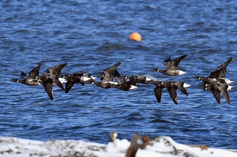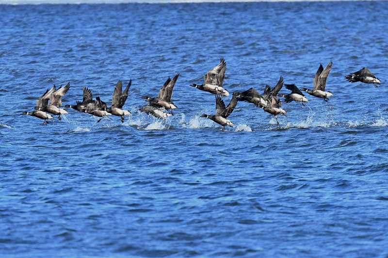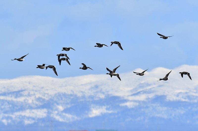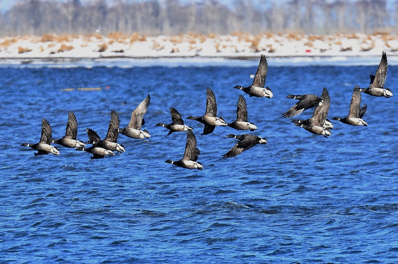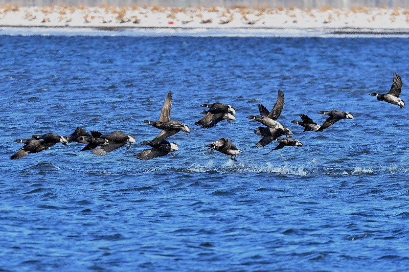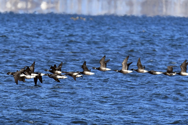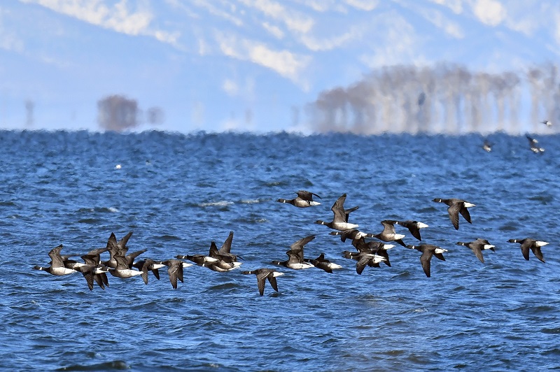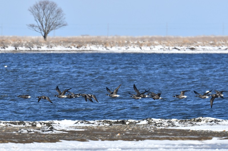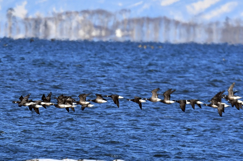 コクガンの群れが次々…いっぱ〜い飛んでます