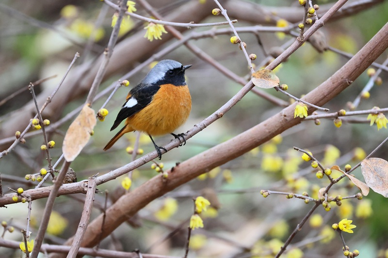 昨日ニシオジビロタキの様子お見にいきました人馴れして足元まで来る事もあります公園の蠟梅も咲き始めました。
