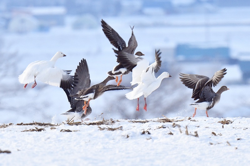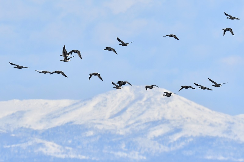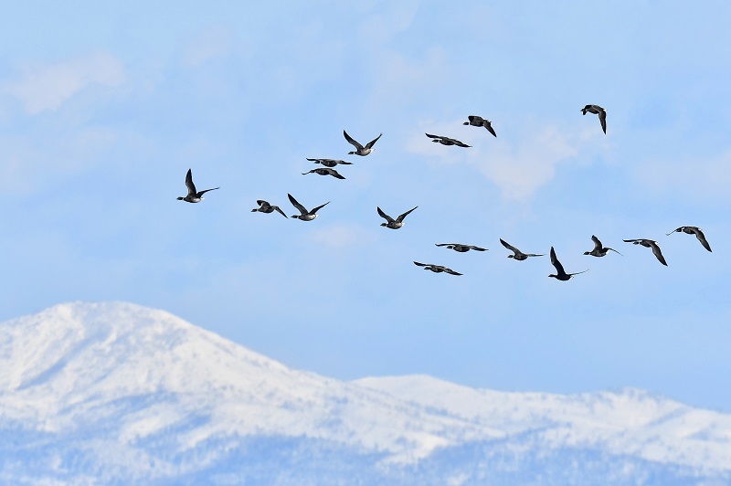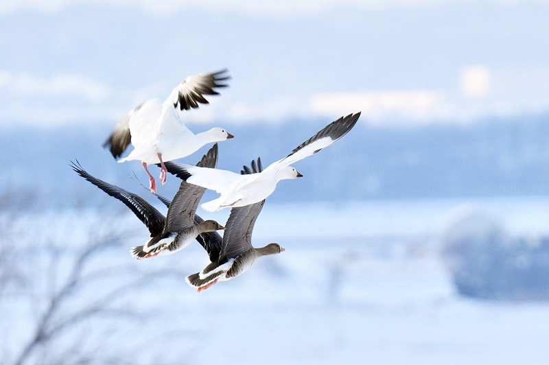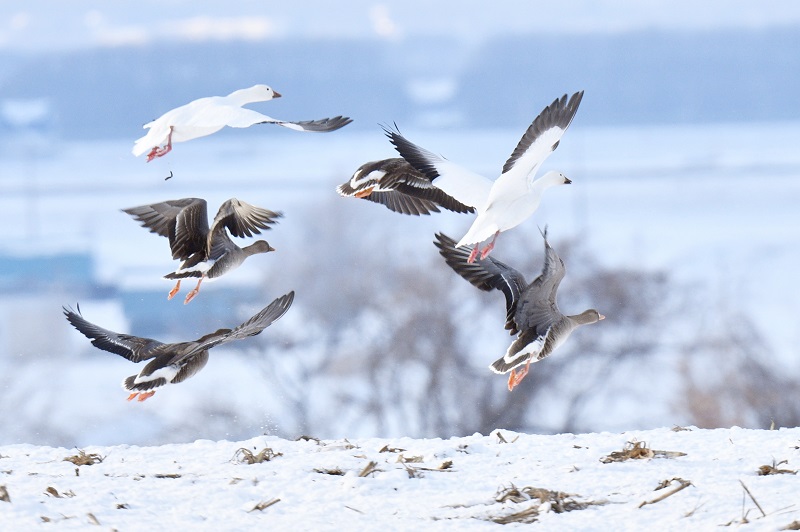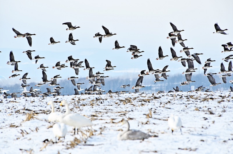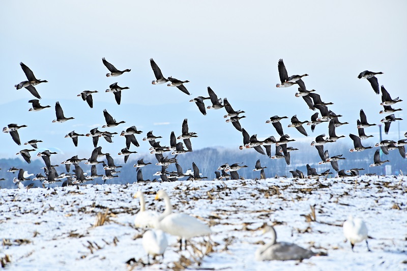 年明け早々にタンチョウ探してパトロール中マガンの群れが
