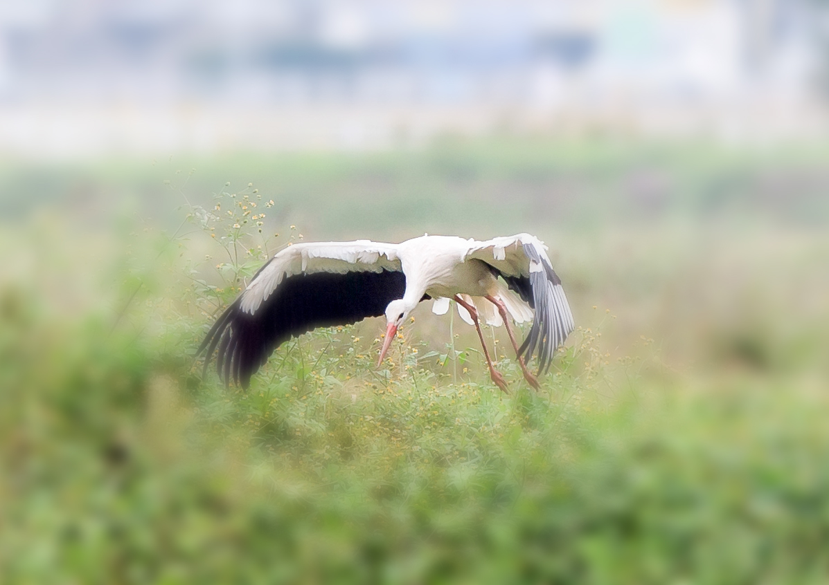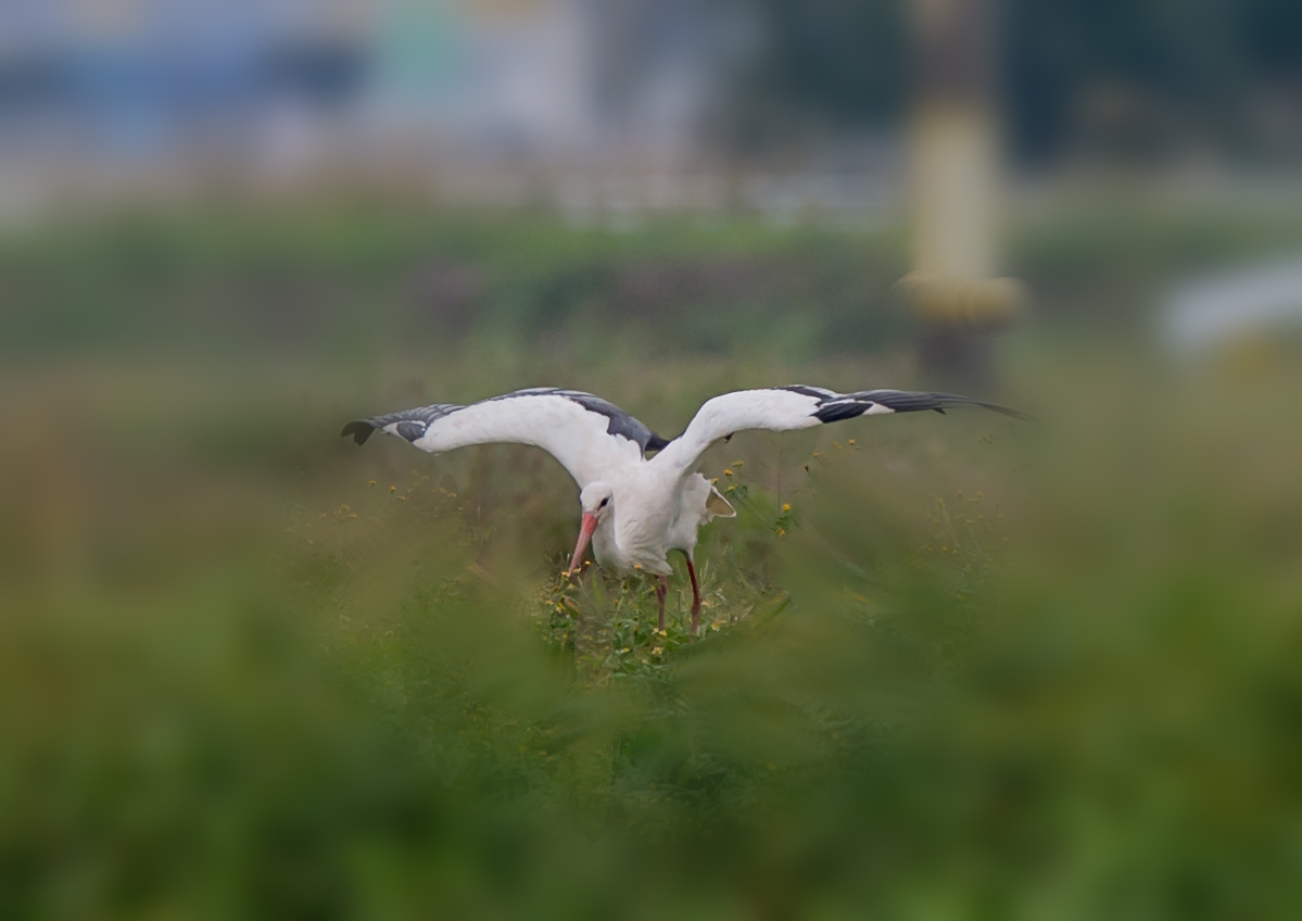 近所に飛来していた朱嘴鸛 フィールド保護の為