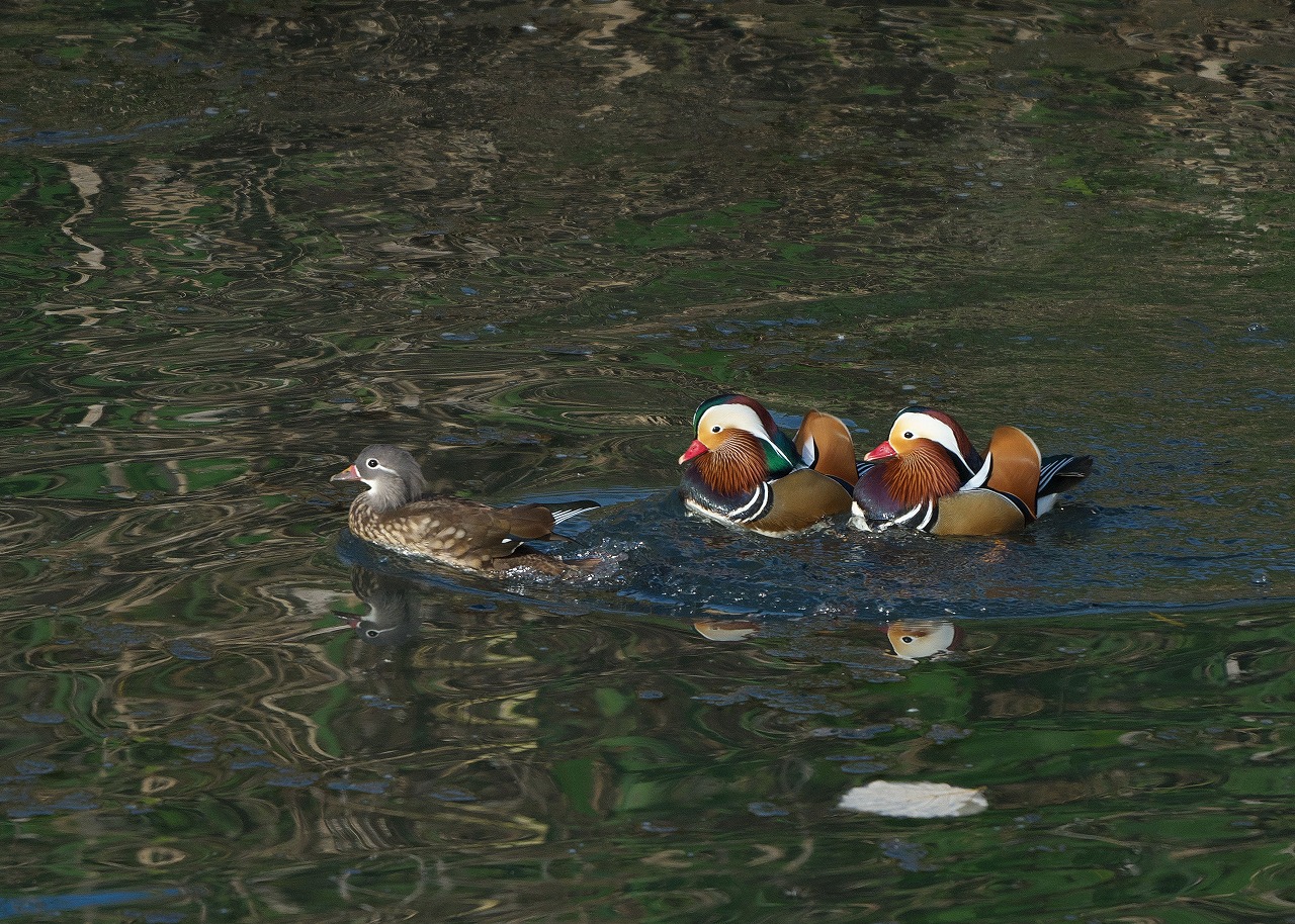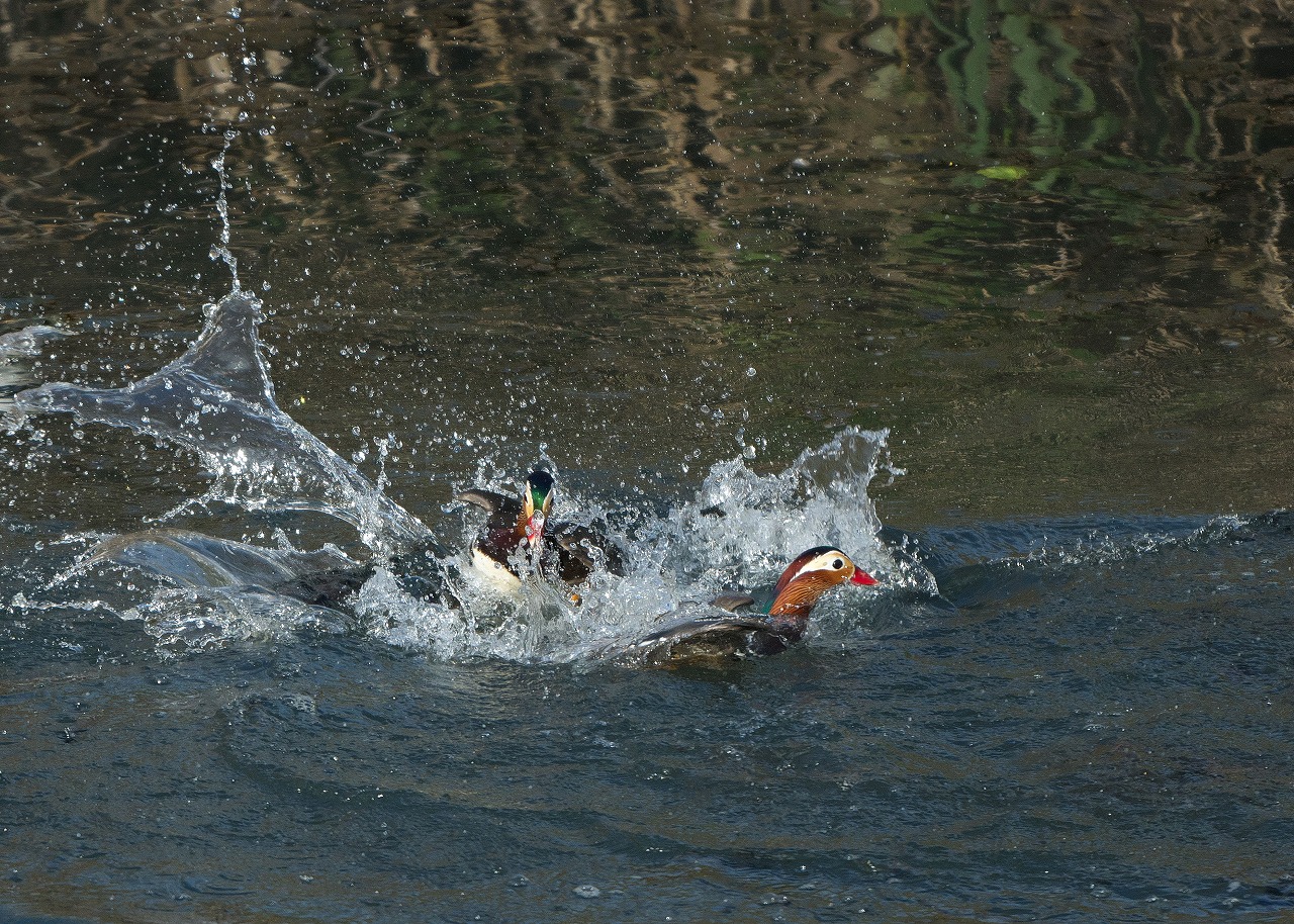 ちょっと離れた調整池のオシドリたち。
