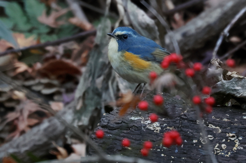 そしてルリビタキ♂、赤い実絡みが素晴らしいです。