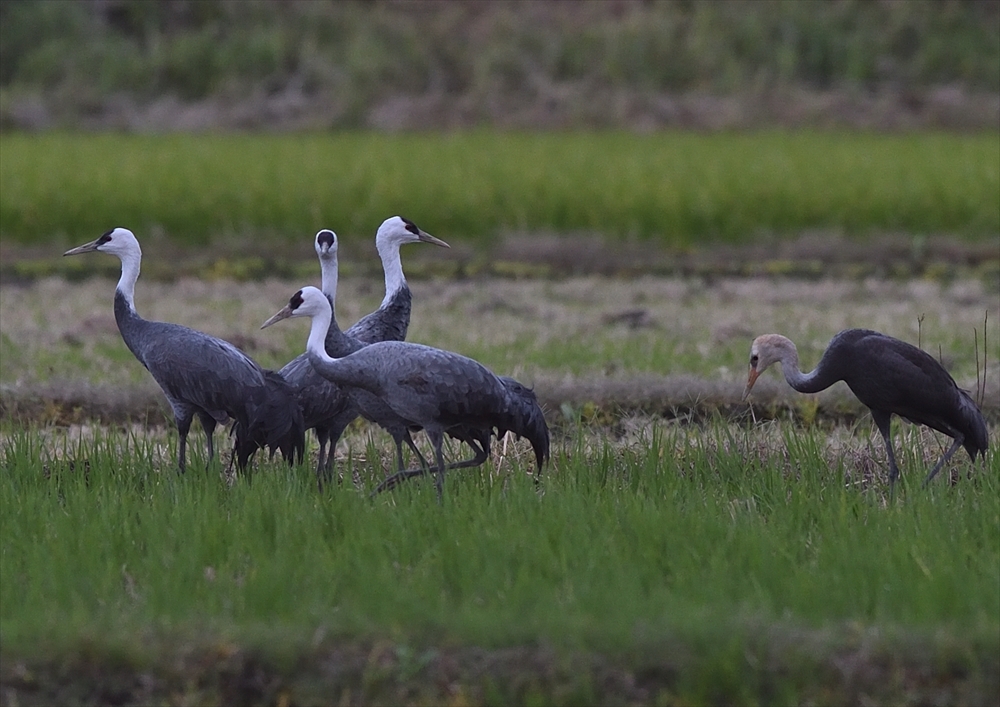 近所の田園地帯でシュバシコウを探索していたらナベツル親子が居ましたか。