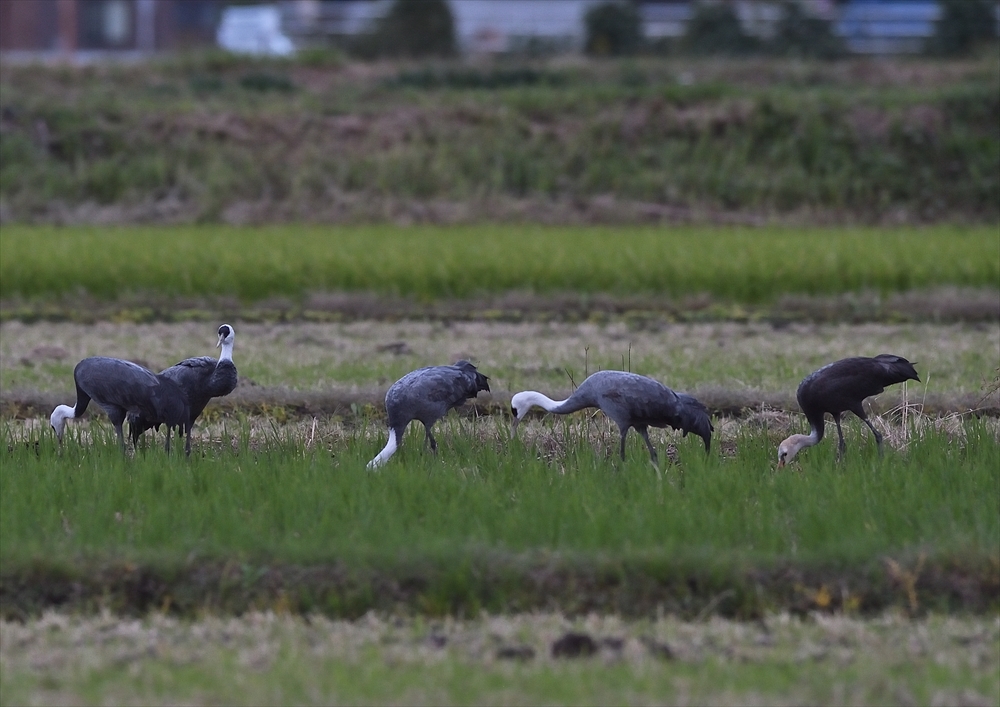 近所の田園を探していたら遠くに数羽の大型野鳥の影が 行ってみると