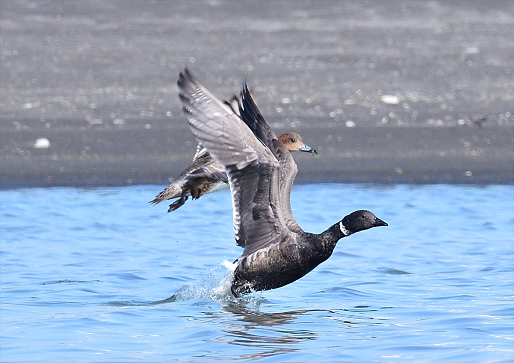やっと冷えて来たのかコクガンやマガン幼鳥が河川敷に来ていました。
