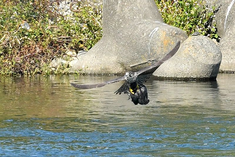 午前中にハヤブサが飛来し、川に浮いているオオバンを3回も襲っているのを見つけたのですが、150m以上先で飛ぶのが早く、私の300mレンズと1世代前のカメラでは追いきれないうえに鮮明に撮れず、ピンボケばかりでした。