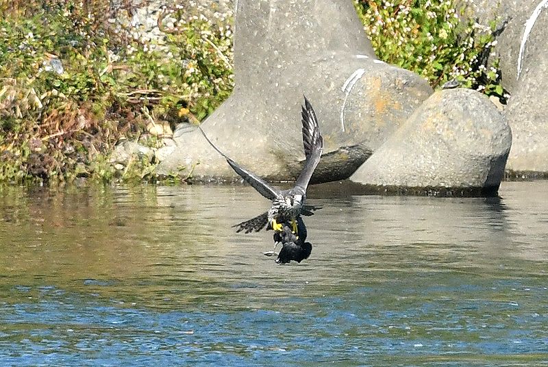 なんとハヤブサがオオバンを襲いましたか、これは珍しいシーンですね。