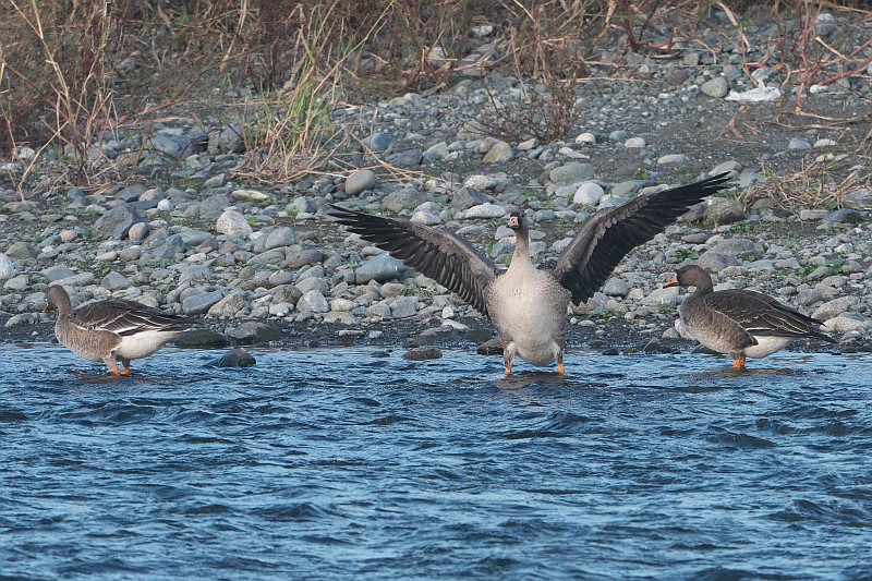 そして少し上流にマガンが3羽居るとのことで見に行ったのですが、こちらは対岸でかなり遠かったです。