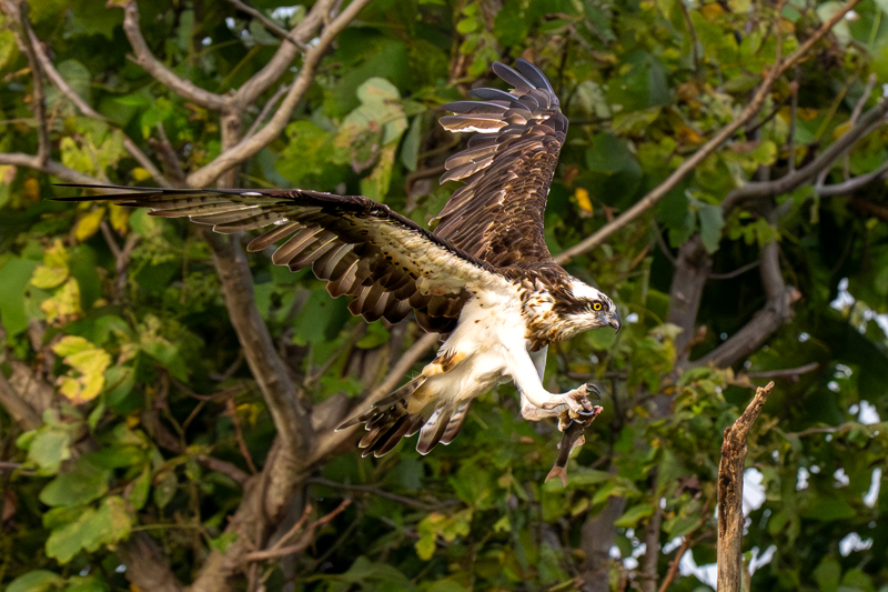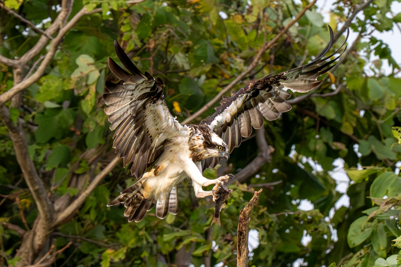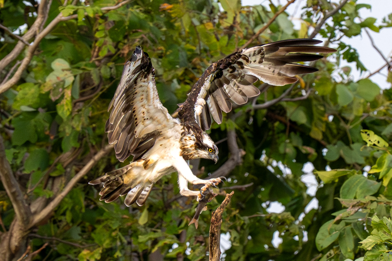 ミサゴは止まって居て撮影を開始したら、休日でカヌー4艇がミサゴの止まって居る木に近づいたため飛ばれてしまい、約1時間半後まで戻って来ず、撮影を始めたらトビが近付き飛ばれてしまい、又1時間半暇な時間でした。