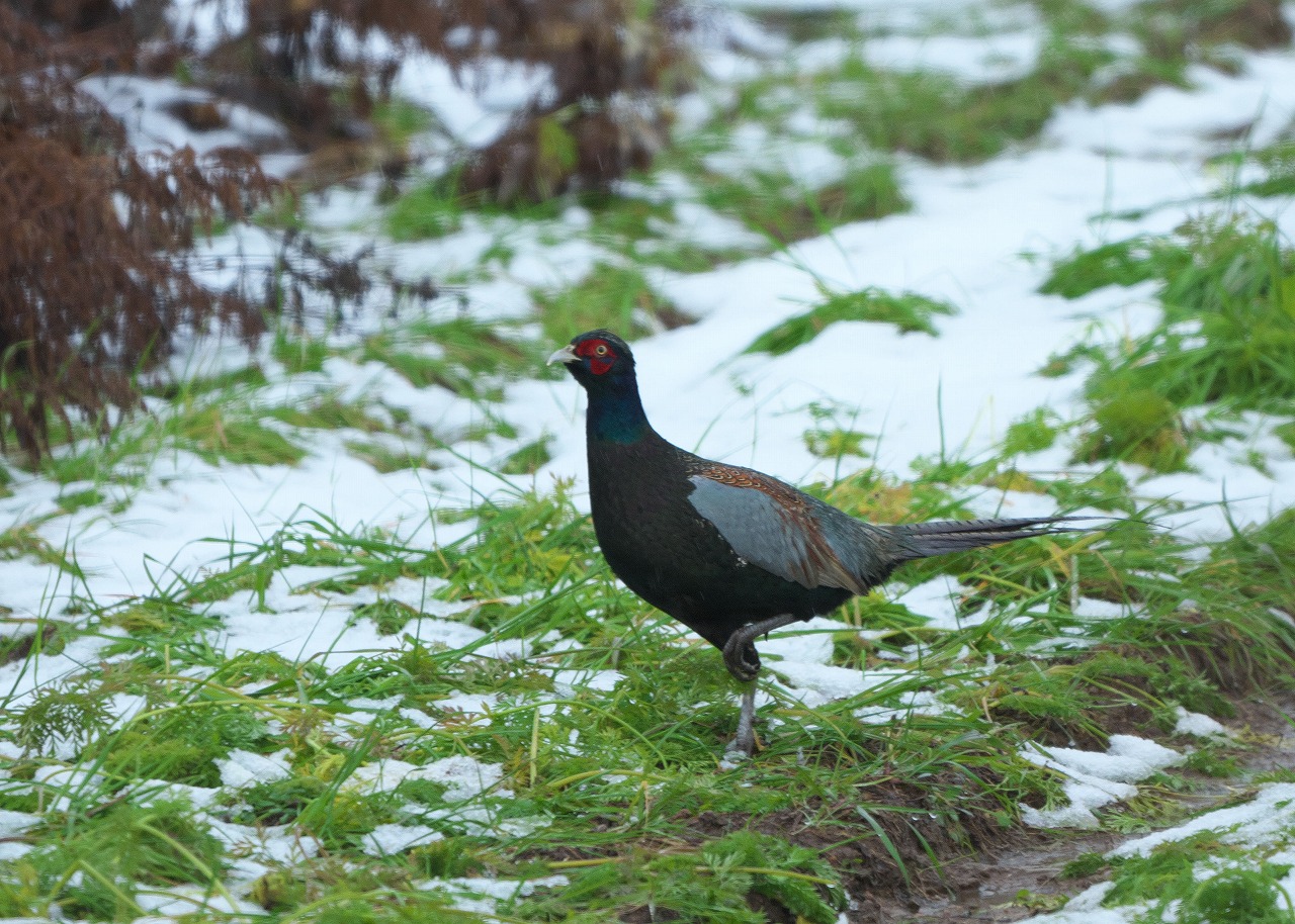 キジも居ましたか。そして積もった雪に止まるカワガラス、カシラダカ、そしてアトリがたくさん居ますね。