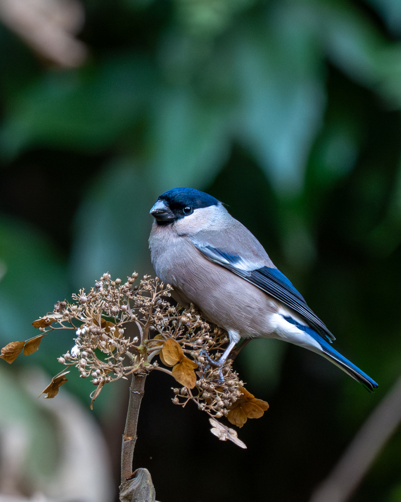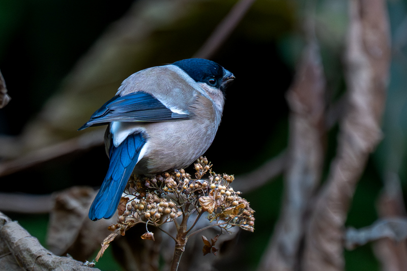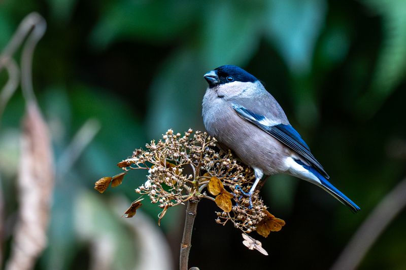 午後になり紫陽花の実が乾きカメラマンが少なくなったタイミングで現れ夢中に食べていました。