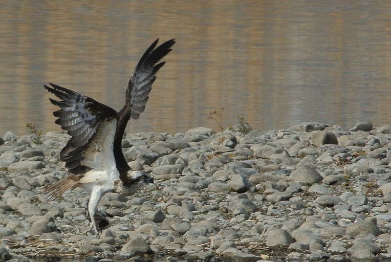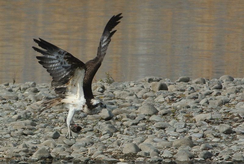 土手をママチャリで走行していたら、約100m先の中州でミサゴが大きな鯉を食べている所でした。
