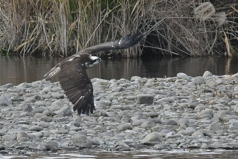 約30分移動して朝のテトラポットに着いたら、ミサゴが鯉の残り半分を食べていて、約1時間半後にトビに追い出され上流方面に飛び去りました。