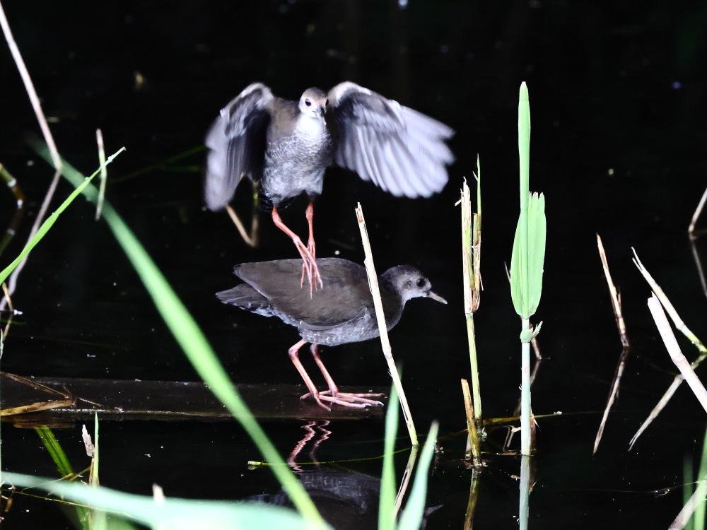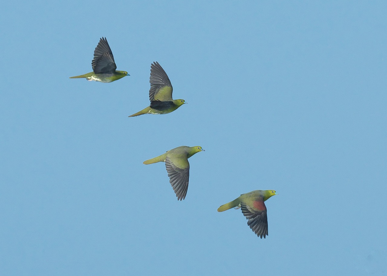 1,まずは、2羽並び。 2,3,4,5は、ジャンプ飛翔です。 左の子に続き急に飛び出したので、 ファインダーに入れるのがやっとのピン甘ブレ画像です。