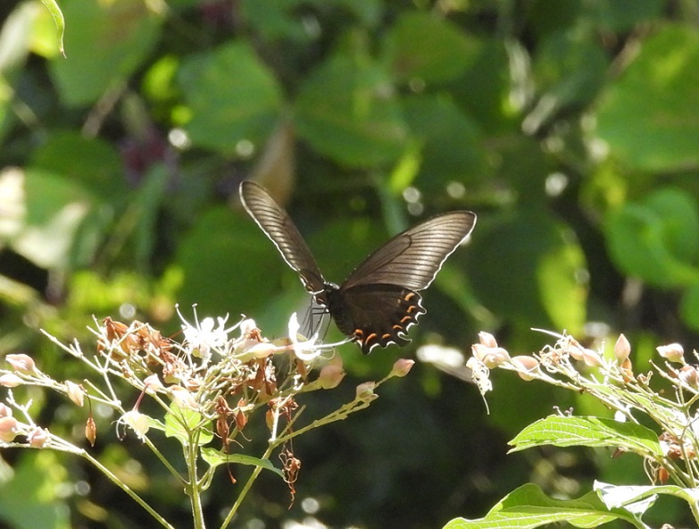蜜を吸うカラスアゲハ、そしてクロアゲハも美しいですね。