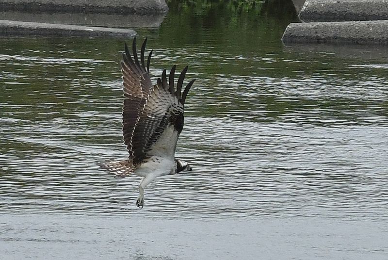 待つこと約2時間したらミサゴが飛来し、1回飛び込んで魚が捕れずに、約100m上流で何回も川に飛び込んだ後姿を消しました。