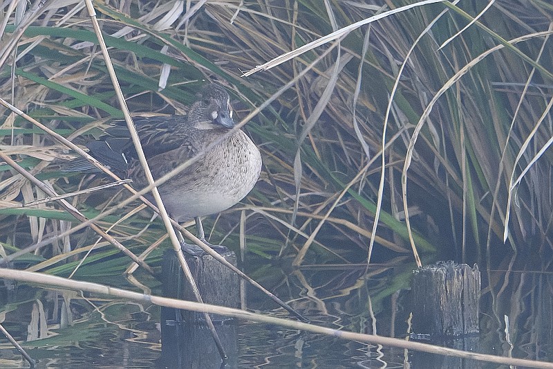 まずは本日のトモエガモ♀。今期初撮りです。 ずっと寝ていましたが、一瞬起きてくれました。白い斑が目印です。