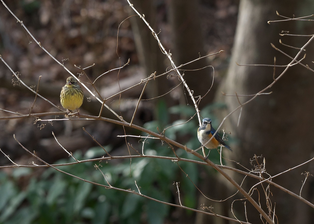 アオジのところにルリビタキがちょっかいを出しに来ていましたか。