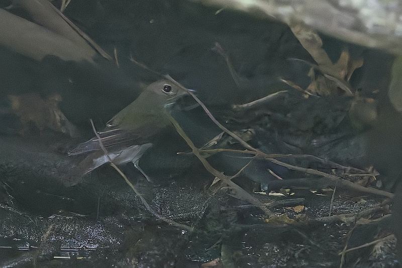 奥の水場にキビタキ♀が一瞬姿を現したのですが、暗くて証拠写真でした。