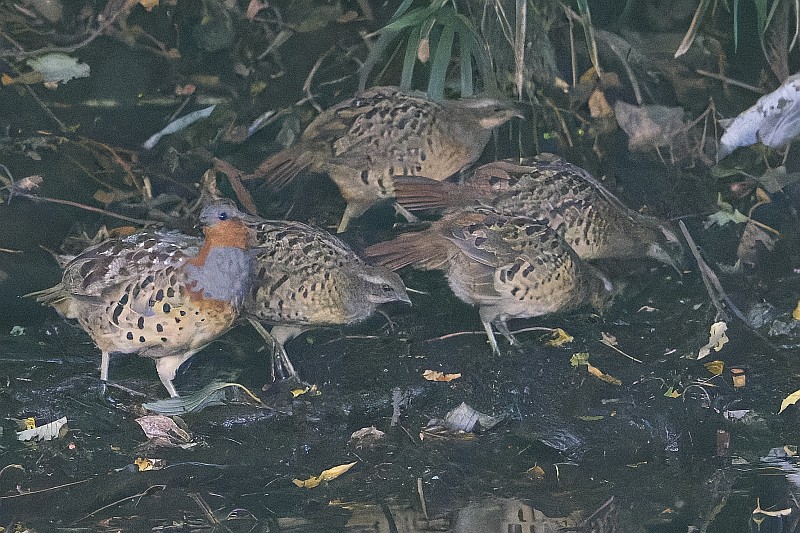 そしてカワセミを撮っていると、その背後に突然コジュケイ一家が通り過ぎました。