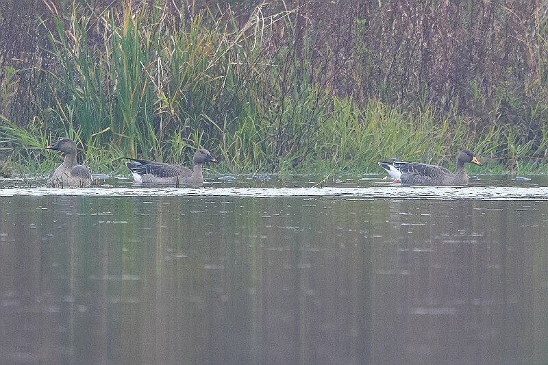 今日になって、マガンの幼鳥が1羽加わって、3羽が一緒に居るとのことで見に行きました。