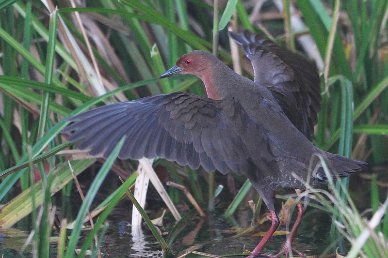いつもの小さな池では久しぶりにヒクイナが出てくれました。 そして羽ばたいてくれました。
