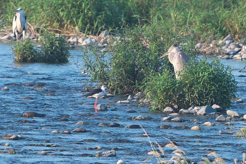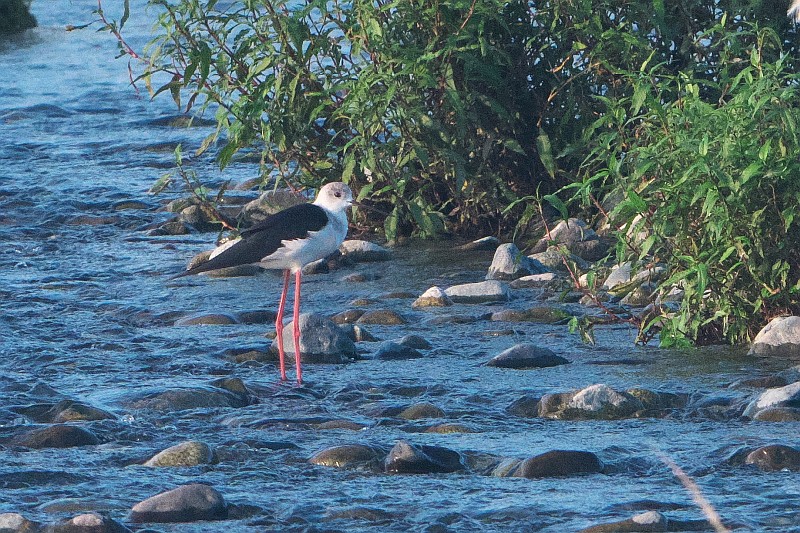 で、今日もサギがたくさん居たのですが、それでもゆっくり探鳥走行して、遠くに居るセイタカシギを発見しました。
