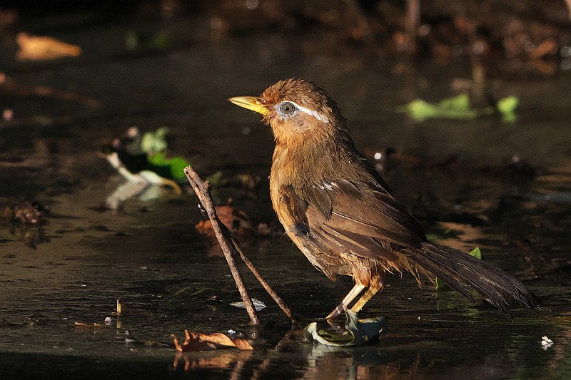 そしてカワセミの出を待っていると、奥の茂みの中から直接水面に飛び込んで水浴びする鳥さんが居ます。