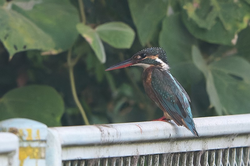 仕方なく、哺乳類を2種撮ってカワセミの飛来を待っていたのですが、柵に止まっているカワセミを発見しました。