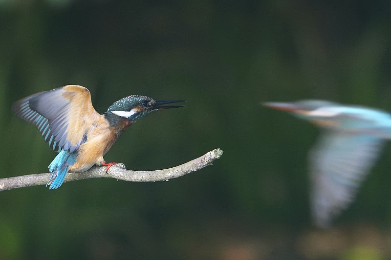 ところがしばらくして、先ほどの♀カワセミが目の前を通過して、主もそれを追いかけて飛び去ってしまいました。