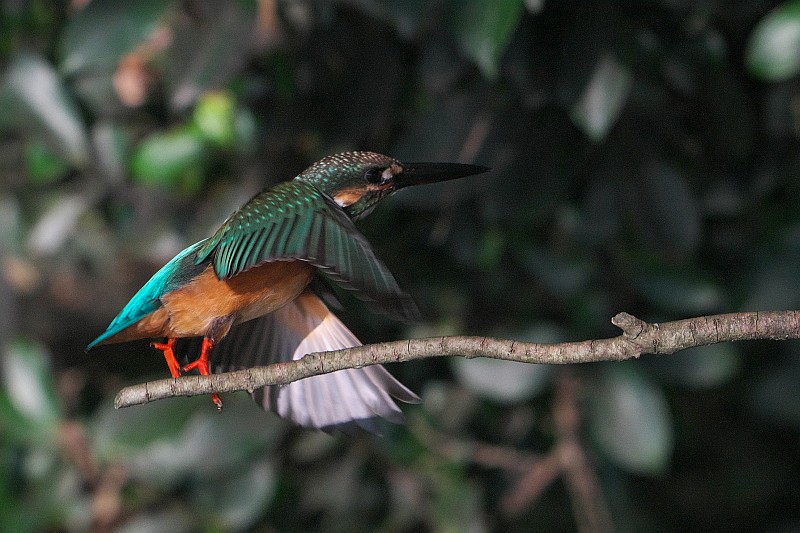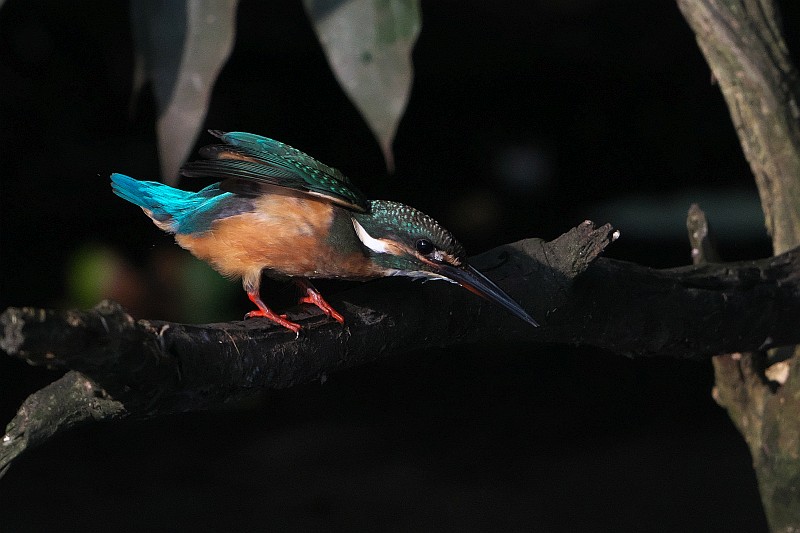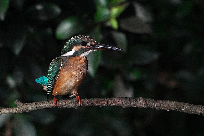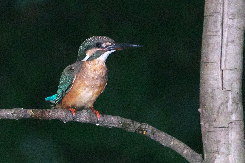 で、ようやくカワセミがやって来たのは5時31分、この♀幼鳥はいつも静かで、鳴き声を聞いたことがありません。