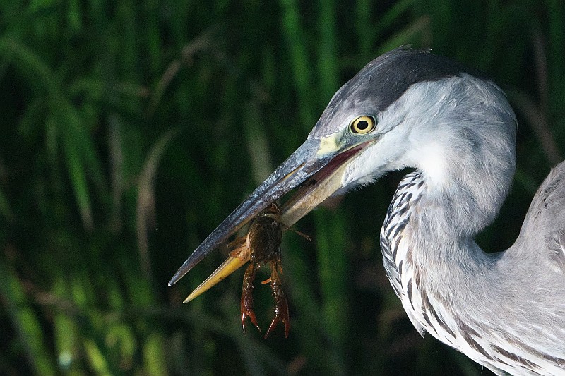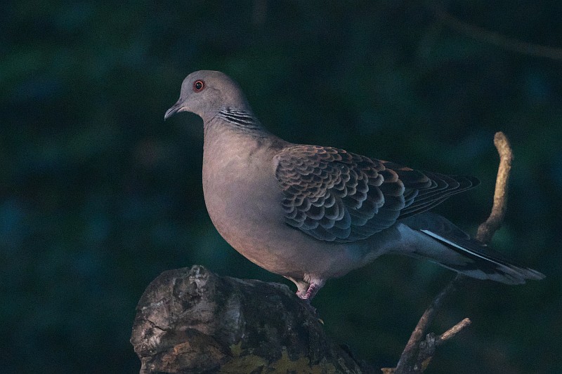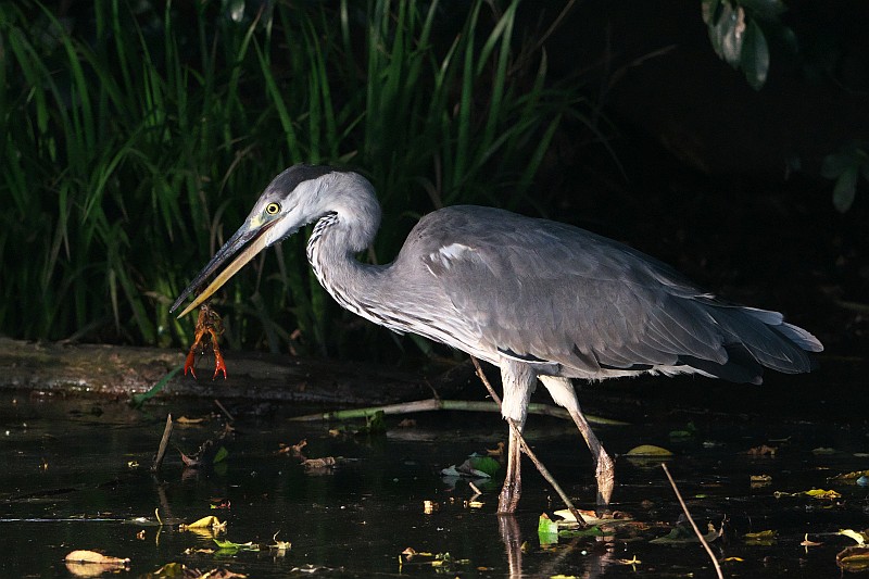 まずはザリガニをゲットしたアオサギと、水を飲みに来たキジバト。