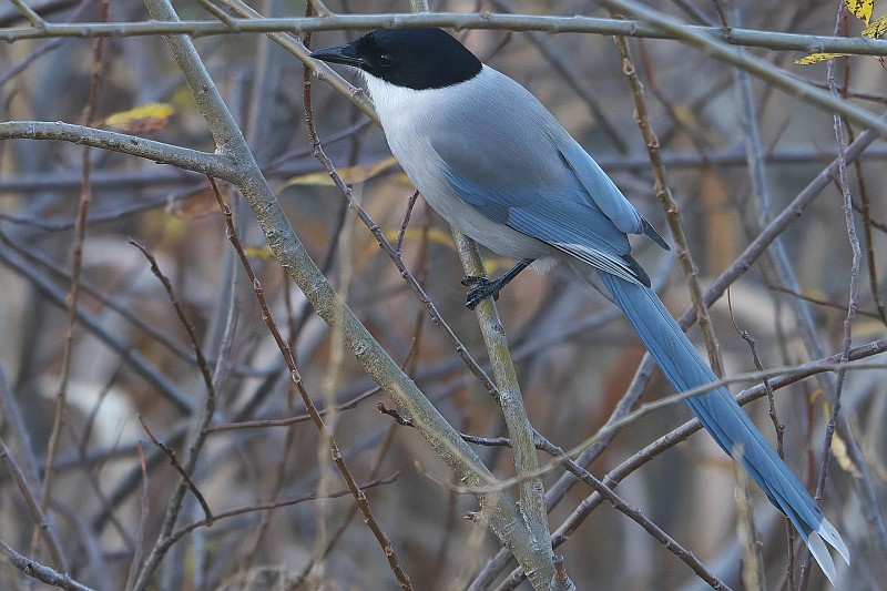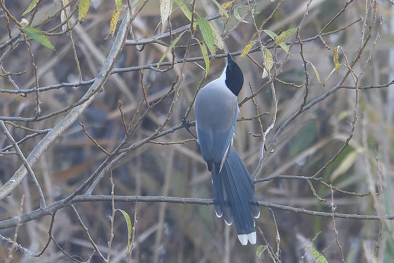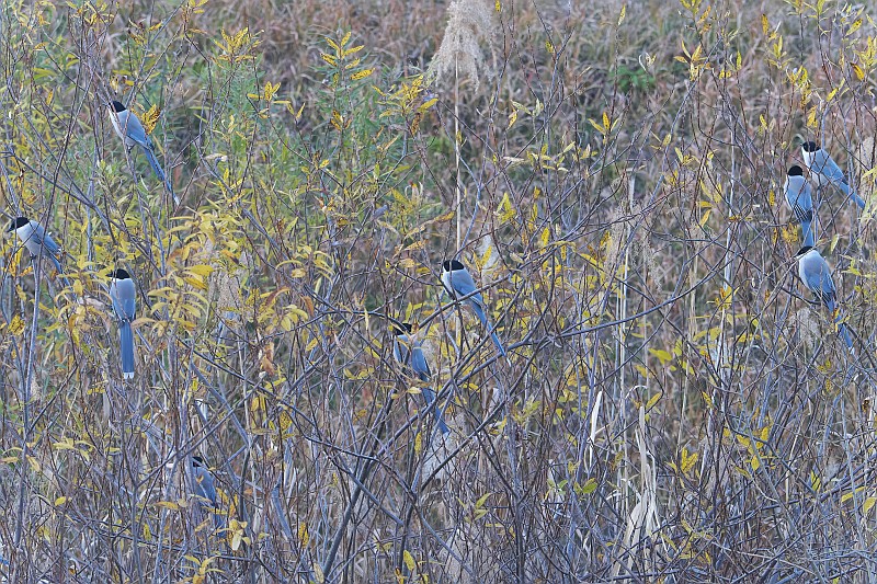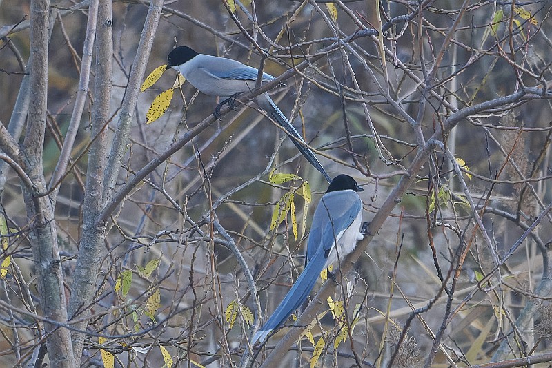 諦めて撤収しようとしたら、オナガの群れが飛来しました。