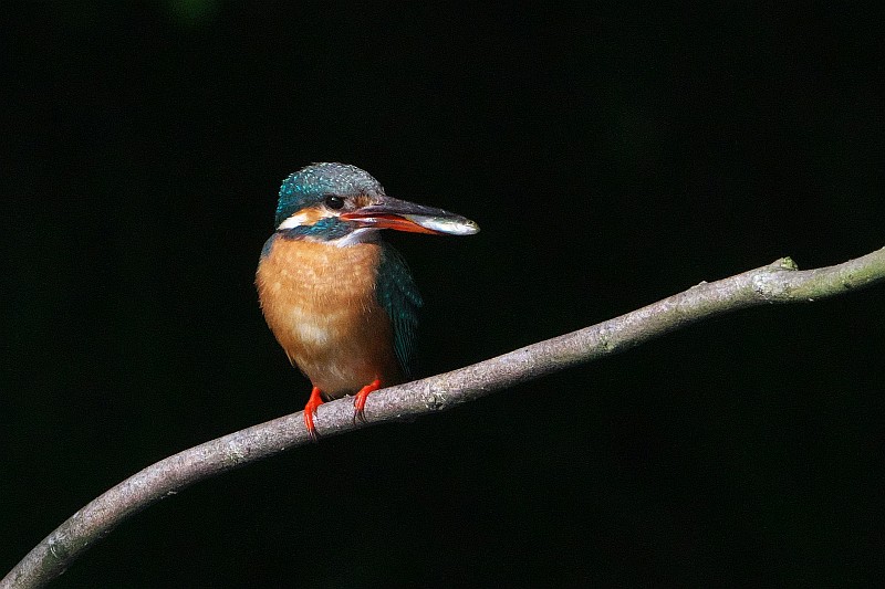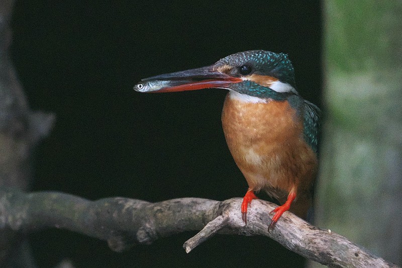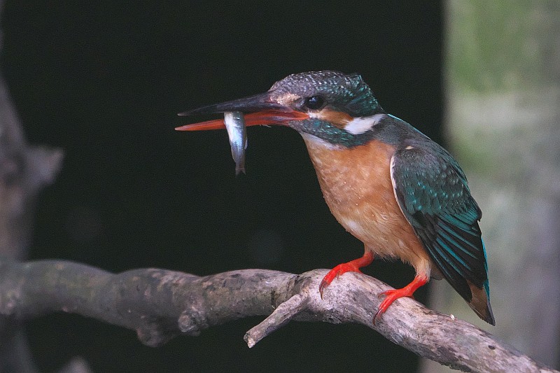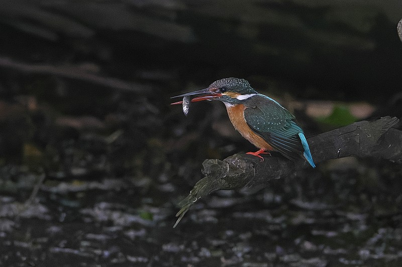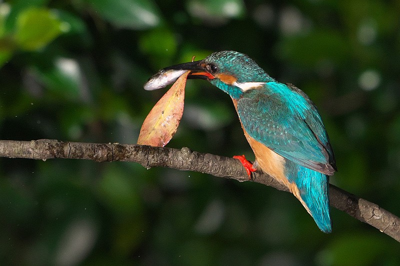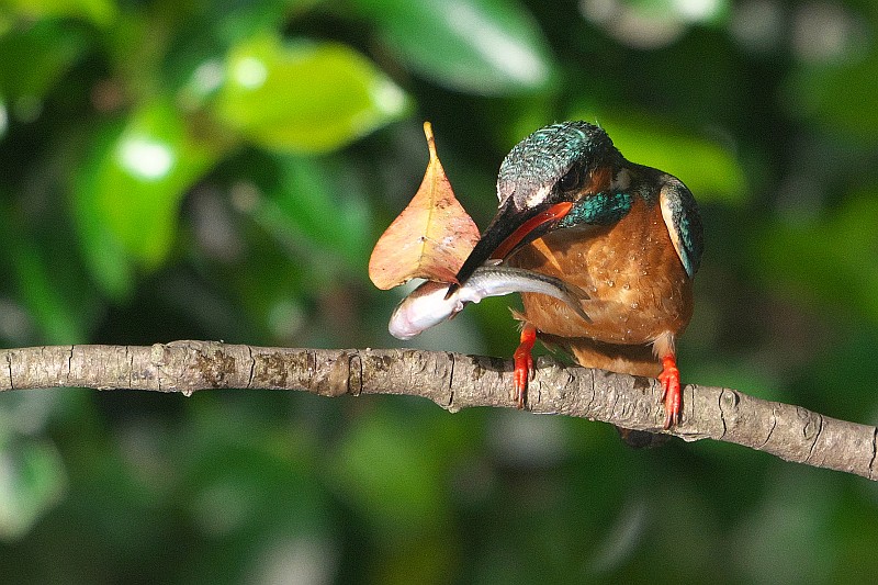 そして、本日のカワセミ。 葉っぱ付きのお魚をゲットしていました。