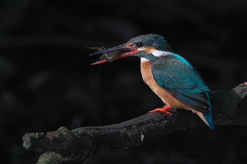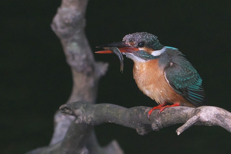 主♀カワセミはすでにお出ましで、何度か飛び込んでは小魚を捕っていました。