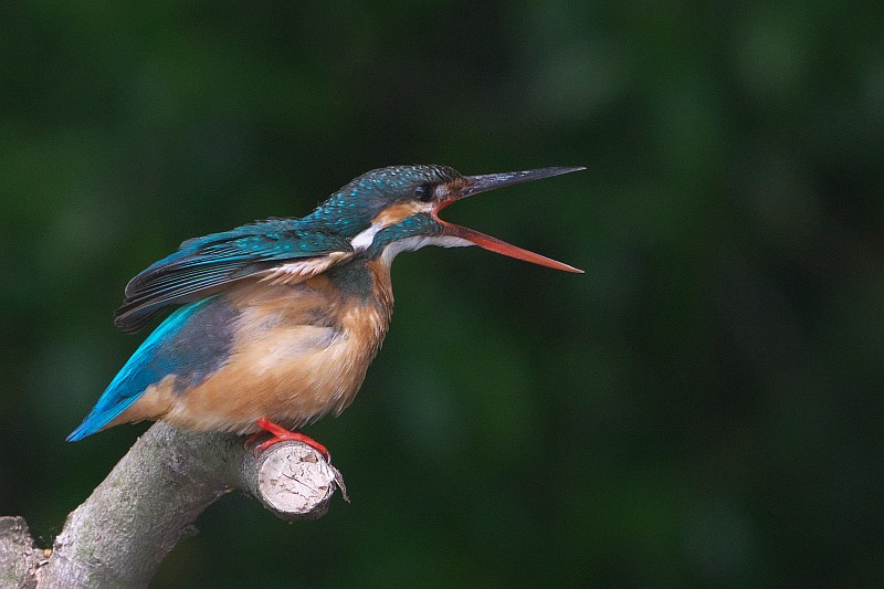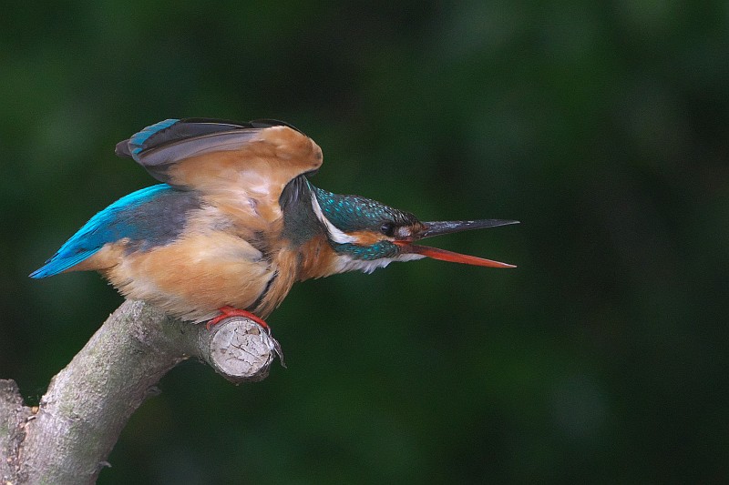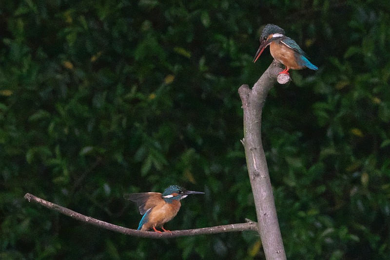 そして、本日のカワセミ。 ♀が止まり木に居ると、突如♂がやって来て、羽をバタバタしていました。