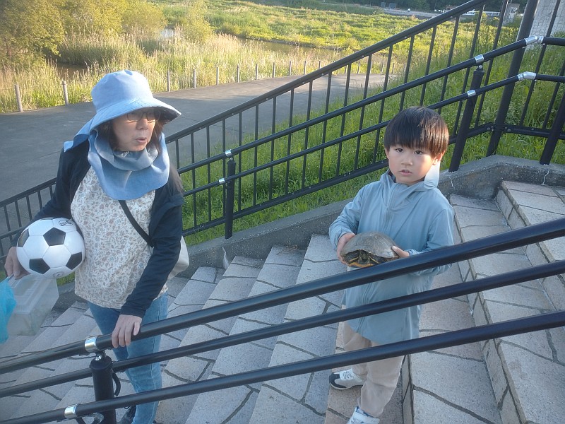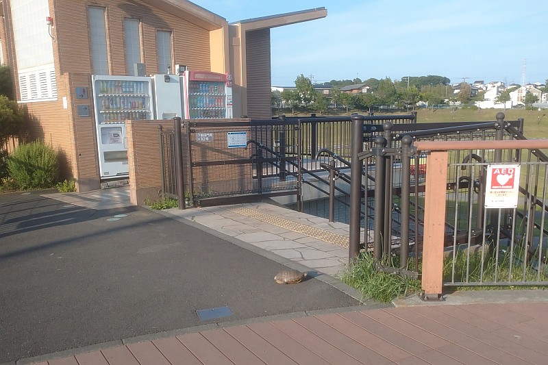 そして橋ポイントに向かったのですが、階段を登りきったところに、なんと亀が居ました。