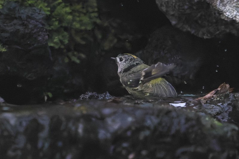 キクイタダキの水浴び動画です。  再生時間:18秒。