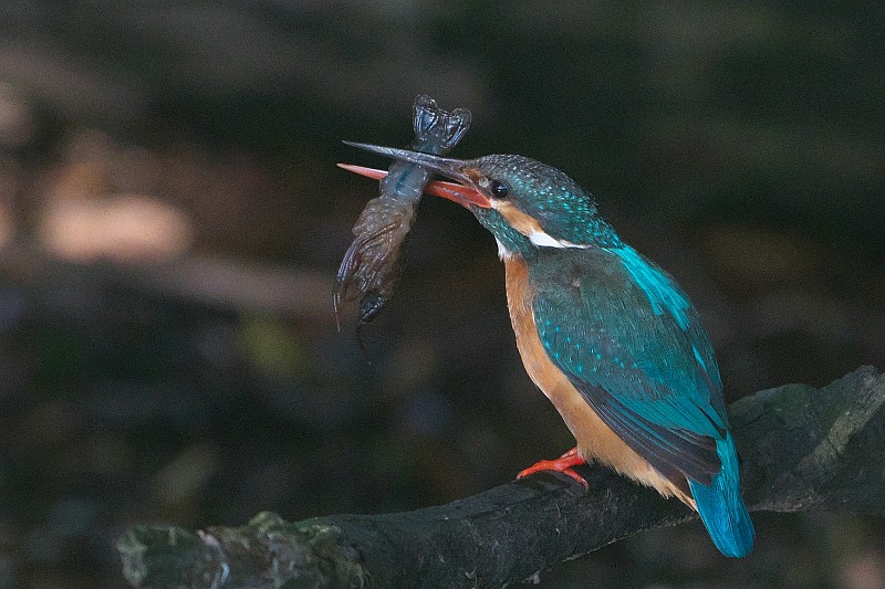 これだけでは寂しいので、昨日の鳥撮りから、カワセミのお食事シーン。