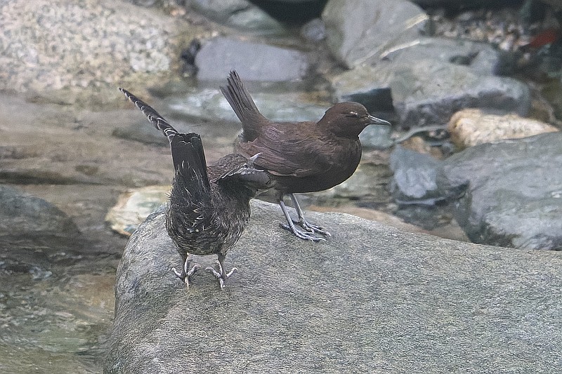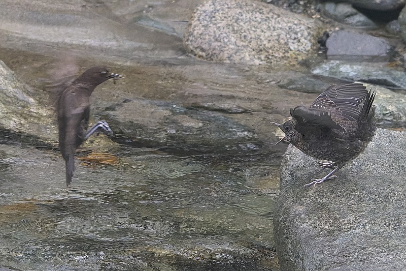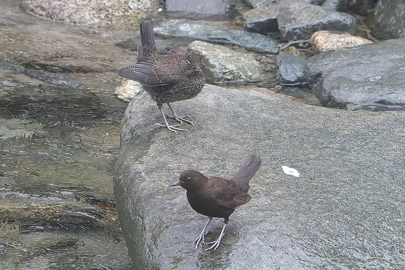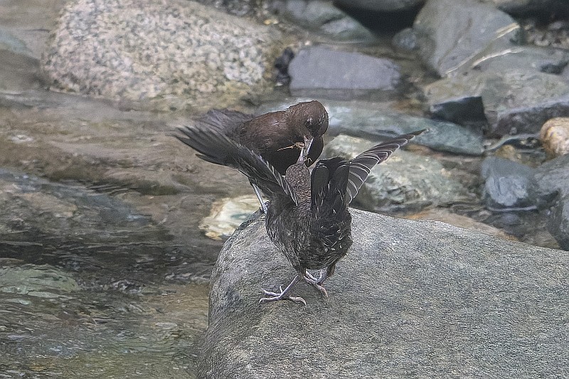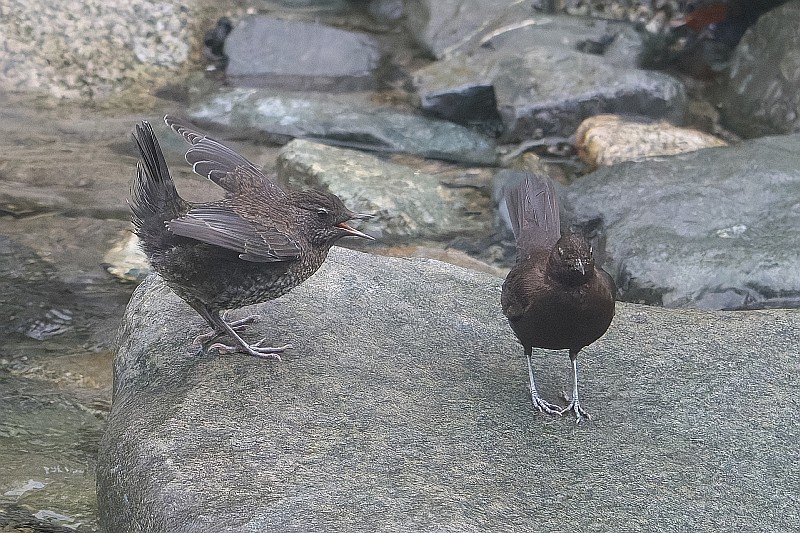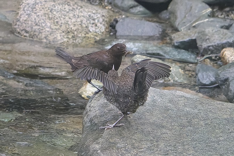 まずは本日のカワガラス給餌シーン。 子供の体格は親よりも大きく見えました。