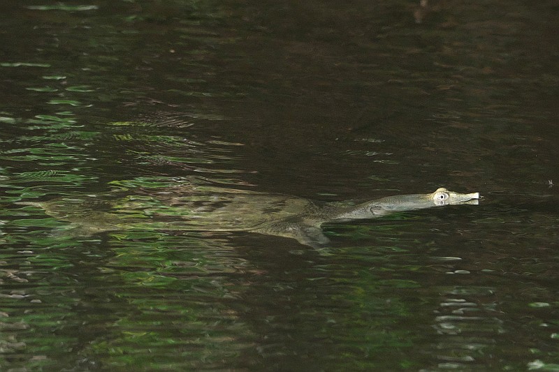 本日のスッポン。 誰かがこの小さな池に放したものと思われます。思いっきり首を伸ばして泳いでいました。