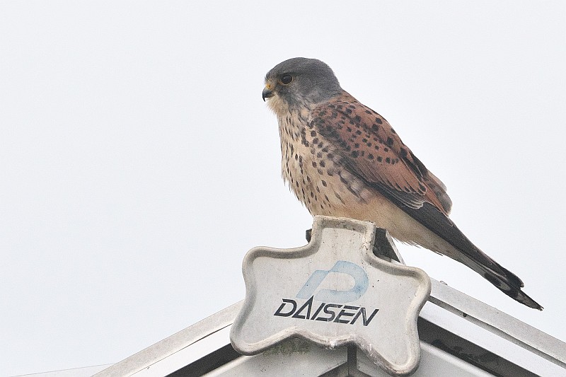 その後、近くの田園地帯に行ってみたのですが、電柱に止まっているチョウゲンボウを発見。