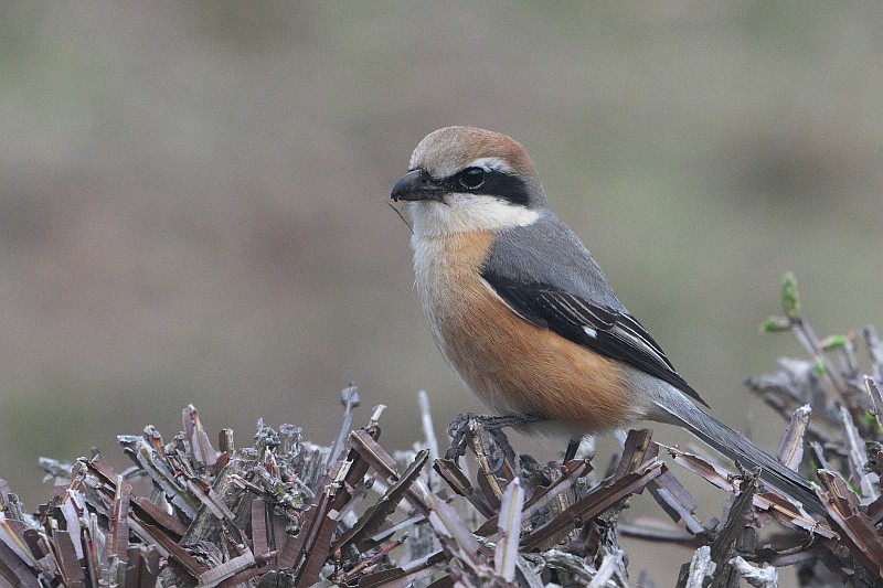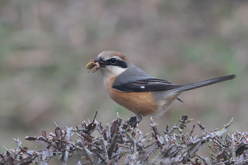 まずは本日のモズ♂。 獲物をゲットして♀のところに持って行くのですが、♀が見当たらず給餌シーンはお預けです。