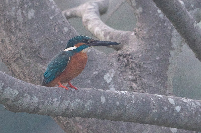 日没前に久しぶりの川に移動、ようやくカワセミに会えました。