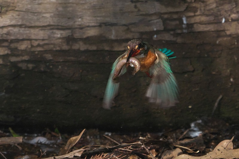 でも、すぐにオオアカハラが現れて、つぎに主♀カワセミが出てきてくれました。