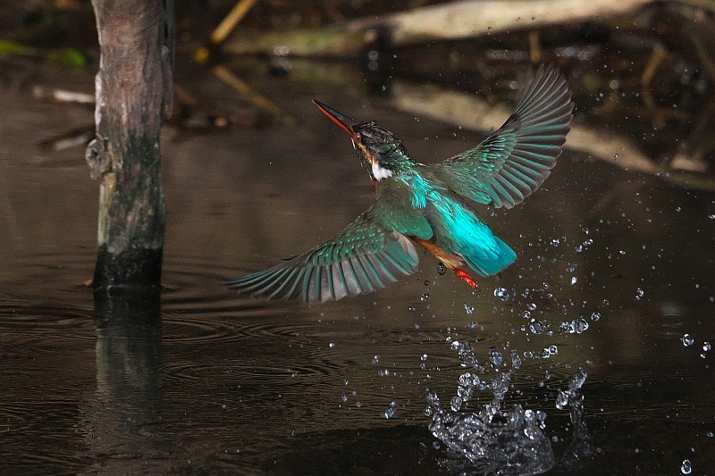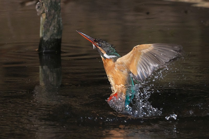 主♀カワセミはドジョウをゲットした後、水浴びをしてくれました。