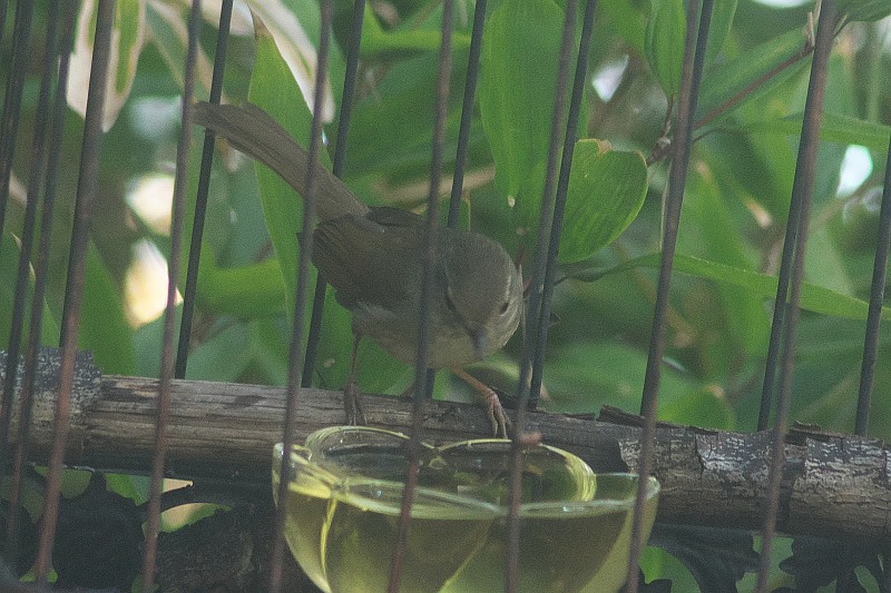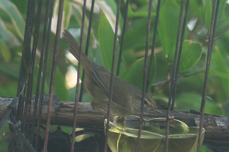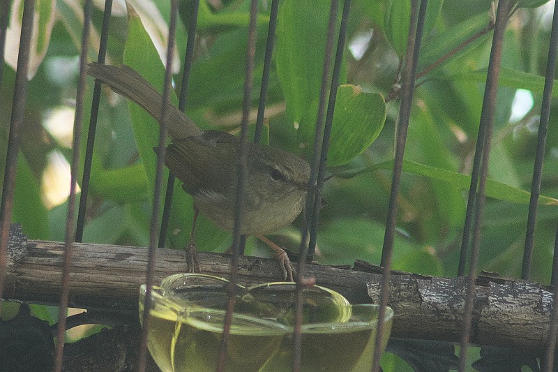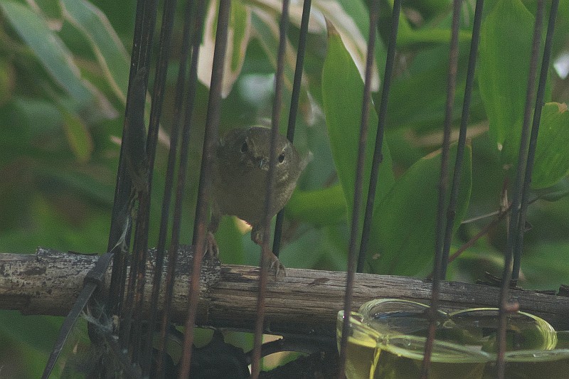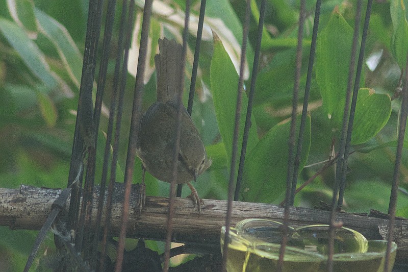 ウグイスは水浴びには来ますが、レストラン入室は初めて見たので、慌てて遠隔シャッターを押しまくりました。