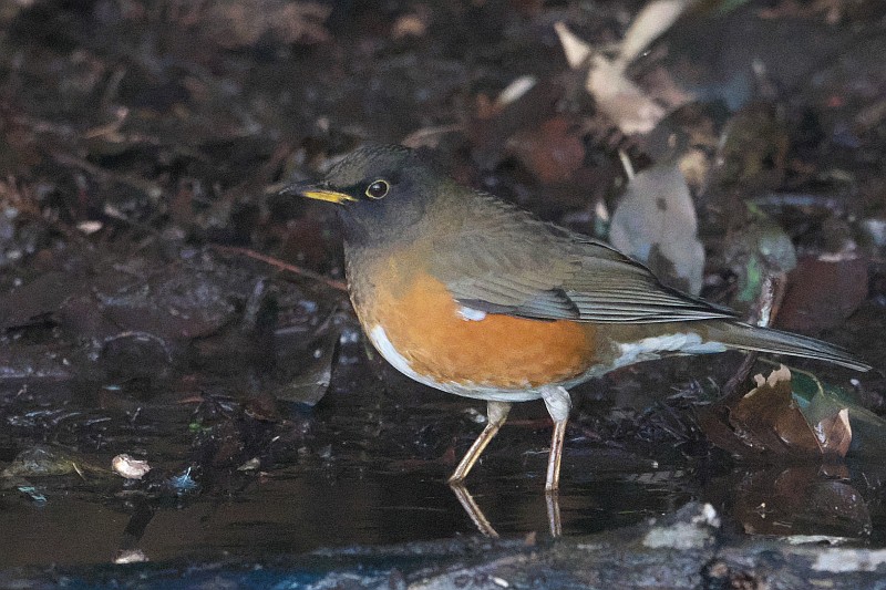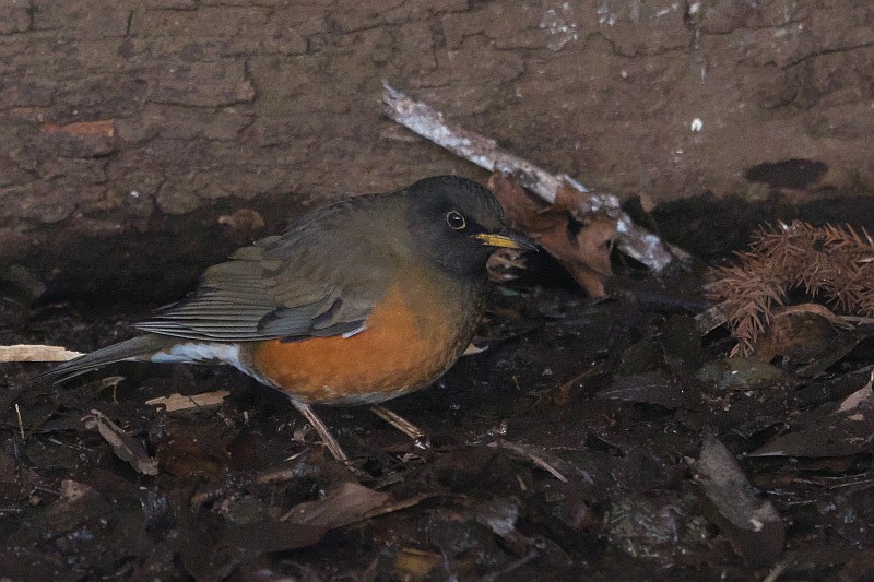 日没直前にもう一度小さな池に立ち寄ってみたら、オオアカハラが出ていました。
